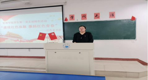 活动伊始,支部书记杨晶同志就党支部近期工作做了简要总结,并对后期支部工作进行简单部署。她强调:“支部全体同志要强化初心,积极向党组织靠拢。主动学习,踊跃参与,将支部特色活动开展好,将主题教育落实好,从活动中学习革命先烈的精神,不断提高自己的思想觉悟和丰富自己的精神内涵。”