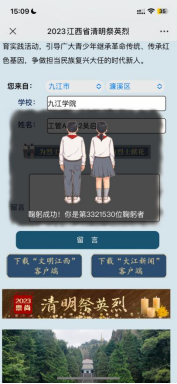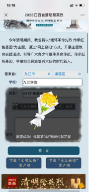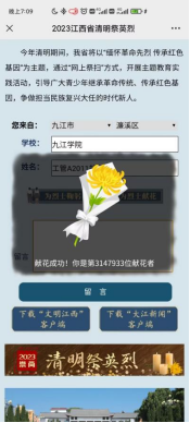 在4月5日清明节当天支部成员通过“文明江西”网络平台在网上祭英烈、献花、寄语和留言等方式缅怀先烈。