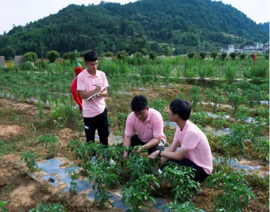 吴胜林如愿考取选调生后,队长的接力棒来到了王小康手中,在2022年的盛夏,王小康同何龙俊杰、胡海平等实践队员赴武宁县鲁溪镇双新村开展暑期“三下乡”活动,实践队依次前往高山辣椒种植基地、英山茶博园、禾塘垂钓基地等地进行实地调研,探寻乡村产业发展之路,谈起双新村的产业情况,王小康了然于胸。“一红一绿指的是双新村的特色农产品,红是高山辣椒,绿是万亩茶园,依托高山特色,打造赣北高山村落产业振兴之路。”