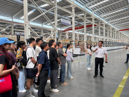 卢海林向师生一行人介绍了公司的发展历程、业务领域与发展成果,带领师生参观了生产线,车间里一台台大型生产机械组成了一条条流水线,智能搬运设备代替人工将生产出来的产品运往物流区,工厂中壮观的景象让在场许多员工感到震撼。在参观完工厂后,卢海林还带师生一行人参观了公司的办公环境与员工宿舍,体验了员工食堂。