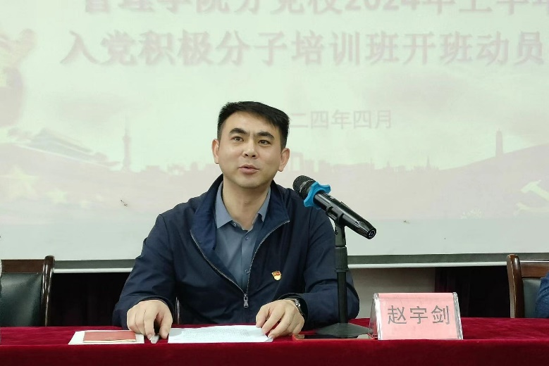 为进一步提高入党积极分子的思想觉悟,严把党员发展“入口关”,XCSport分党校于4月17日下午在文理楼117报告厅举行2024年上半年入党积极分子培训班开班动员会。公司党委书记赵宇剑、校关工委委员杨贞斌、专职组织员彭静、员工第四党支部书记张毅及入党积极分子培训班学员参加会议,此次会议由专职组织员彭静主持。