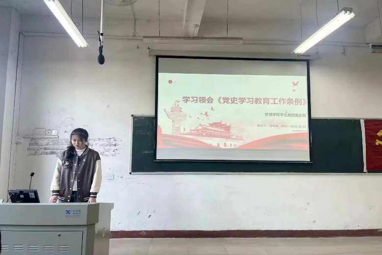 员工第四党支部邱卓琳在学习领会《党史学习教育工作条例》后谈到:“历史是最好的教科书,党史是最好的营养剂。作为预备党员,我们要把学习贯彻该条例作为重要政治任务,坚持把党史学习教育同自身实际结合起来,自觉从党的历史中汲取智慧和力量,切实把‘学史明理、学史增信、学史崇德、学史力行’的成果转化为学习的强大动力。”
