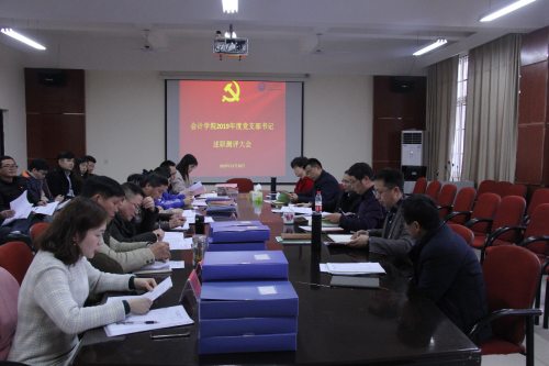 会计公司2019年度党支部书记述职评议大会于2019年12月20日下午在立信楼504会议室召开。会计公司公司党委书记吴铃、党委副书记罗维、党委委员许松涛、蔡报纯、张国伟、胡洁及各支部书记、支委代表和党员代表参加会议。此次会议由吴铃主持。