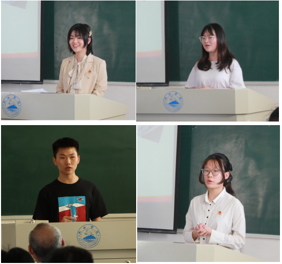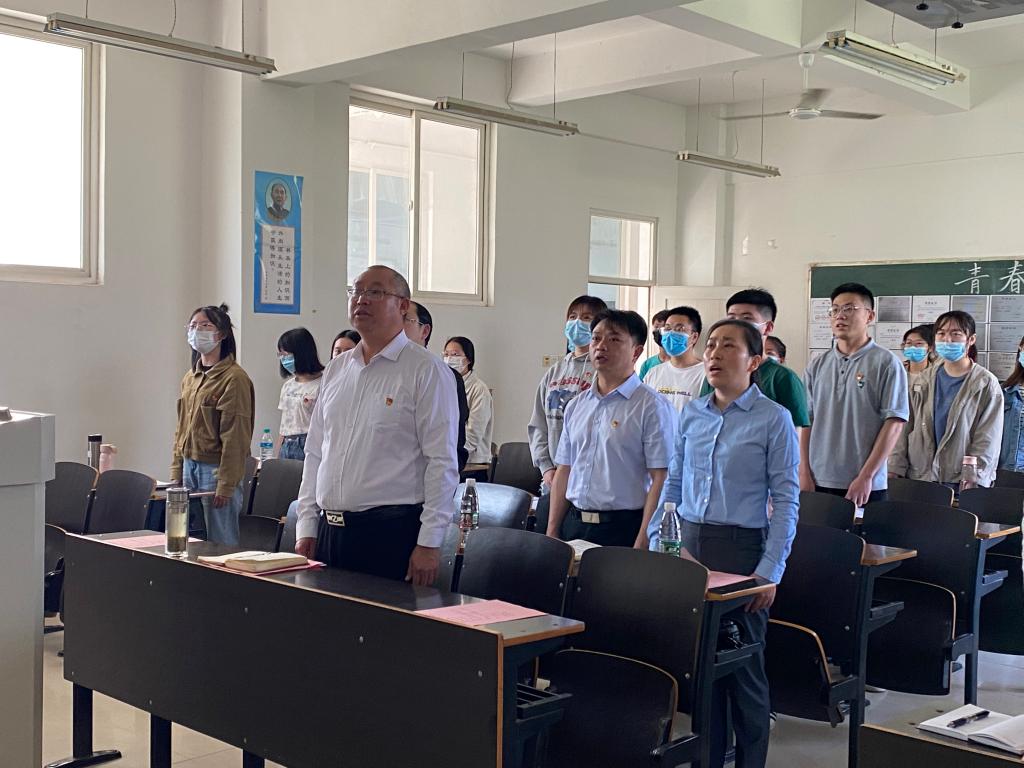 团日活动在全体师生合唱《光荣啊,中国共青团》的嘹亮歌声中拉开了序幕。学习委员黄浩楠同学介绍了这次团日活动的主题、目的与意义,团支书李桐桐同学带领大家观看了视频《十年——习近平与老员工在一起》,共同回顾十年来习近平总书记关心青年、勉励青年、与青年在一起的故事,并领学4月25日习近平总书记视察中国人民大学重要讲话精神。