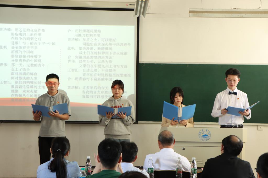 随后,青年团员们纷纷上台抒发学子们拳拳报国心、浓浓爱国情。黄浩楠等4名同学的诗朗诵《青春中国》,表达了九院青年学子对伟大中国共产党的热爱,对青春中国的热爱。张帆等9位同学纷纷上台发言,畅谈在九院的学习、生活、实践实习及将来的职业发展规划,抒发爱党爱国爱校之情、表达建功立业之志。同学们表示在今后的学习中,要更加积极投身社会实践,锤炼专业本领,争做堪当民族复兴重任的时代新人。陈小林在台下听得非常认真,频频点头,不断和同学们互动,现场气氛非常活跃。
