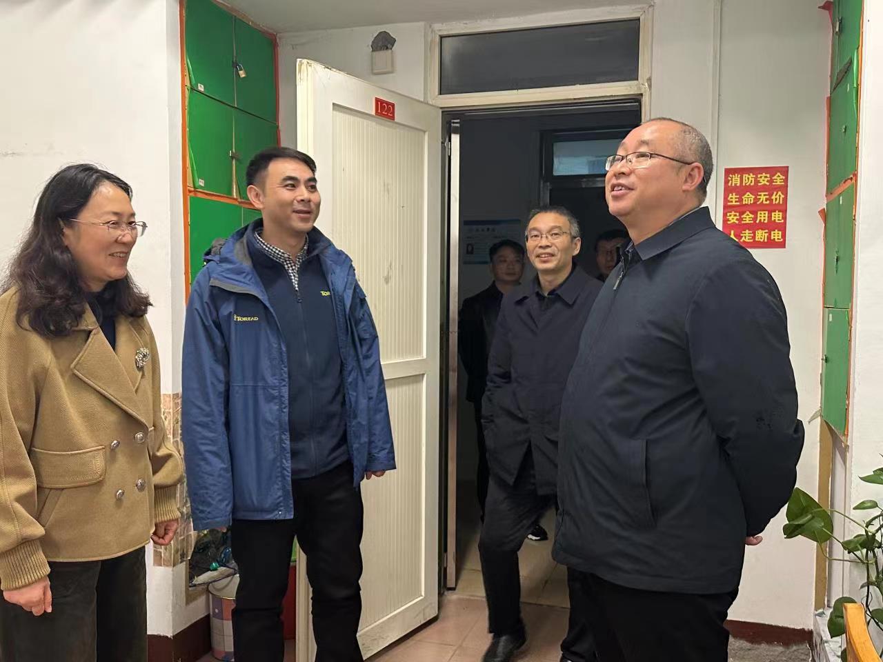 调研会后,陈小林在公司党政班子成员陪同下,来到员工宿舍27栋,看望全体辅导员、检查指导员工工作。公司员工人数多,防控工作任务重、压力大,陈小林鼓励大家要树立信心、克服困难、压实责任,按照公司要求,持续做好疫情防控工作和员工日常管理工作,要深入班级、深入寝室,走进员工、关爱员工,切实维护员工身心健康,保障校园安全稳定,同时,他还叮嘱辅导员自身也要注意防护、保重身体、乐观生活。