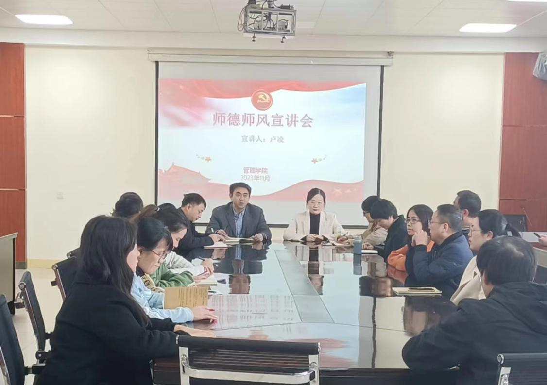 教育的宗旨在于立德树人,用爱与责任铸师德师魂,做有温度的教育。在这个理念的引导下,卢凌博士以自己的求学、从教历程中的真实案例和实际生活中的鲜活故事为线索,进行了以“树师德 扬师风”为主题的师风师德学习分享。卢凌博士分别从“教学教研工作”“科研工作”“班主任工作”“公司工作”和“服务社会”五个方面讲述自己对教育的赤忱热爱。每一个故事的背后都是一份沉甸甸的爱和责任,卢凌博士以扎实的专业功底、过硬的教学能力、勤勉的教学态度和科学的教学方法深刻地阐释了“树师德 扬师风”的内在含义。