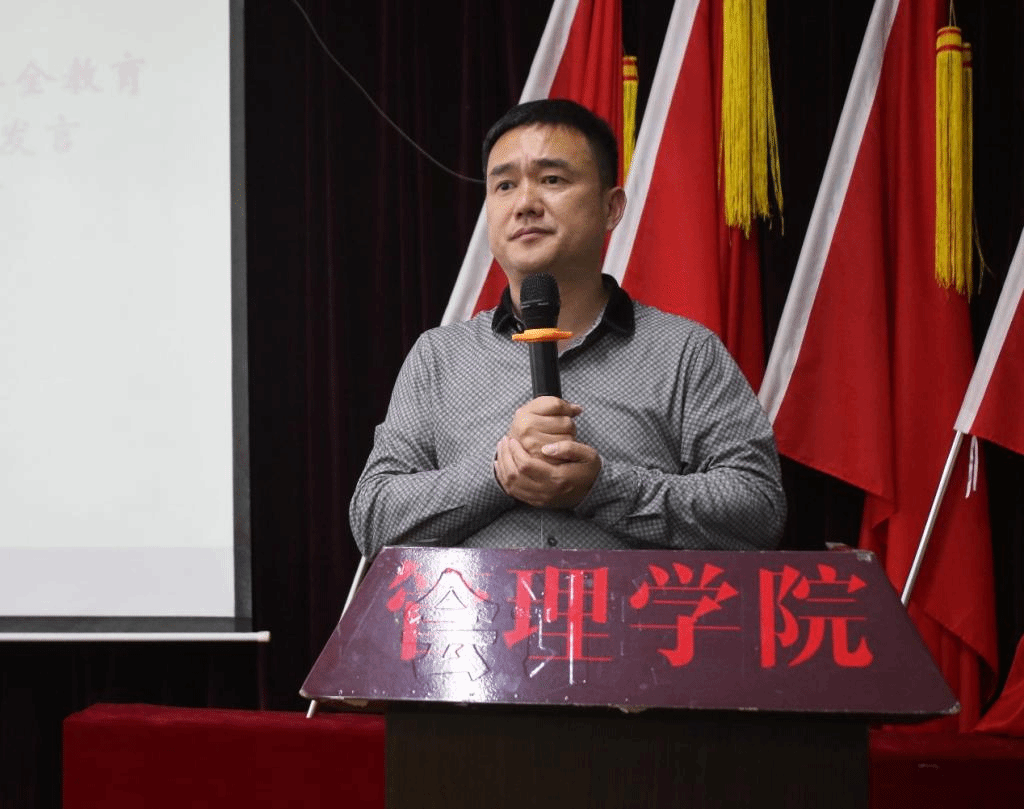 熊斌宣读《实训教学安排》和《实训教学安全承诺书》相关内容,强调同学们在实训期间,要严格遵守公司和企业的规章制度,树立安全意识,确保自身安全。
