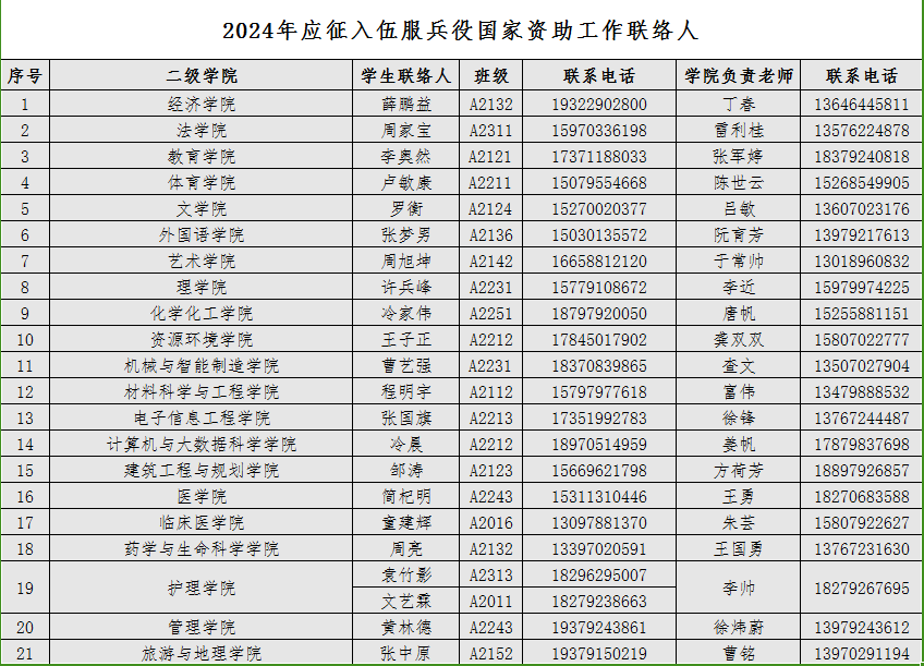 5.如有疑问可根据《2024年应征入伍服兵役国家资助工作联络人》表格中对应的二级公司联系人,咨询并协助大家办理相关手续。