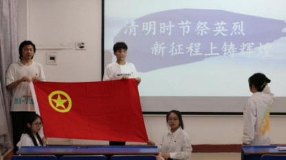 学习部主持队作了《清明祭英烈,弘扬爱国情》诗朗诵,激昂的腔调中歌颂着世世代代为国捐躯的英烈们。