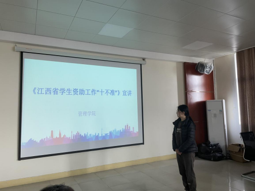 资助专项辅导员王珊老师围绕《江西省员工资助工作“十不准”》条例,分评审、公示和资金发放三个板块进行了详细解读,同时围绕国家奖助学金的奖励标准、申请条件、主体资格、评审程序、注意事项,逐一作了解释说明。