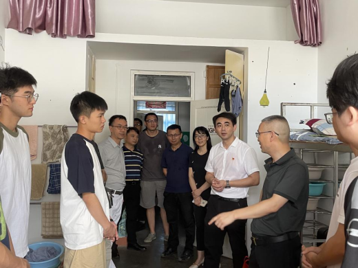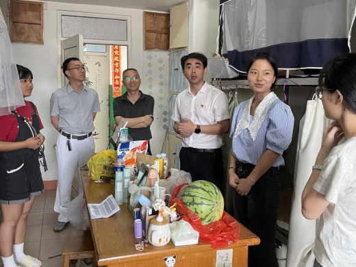 在全院上下深入开展学习贯彻习近平新时代中国特色社会主义思想主题教育之际,为进一步推动主题教育持续走深走实,切实为员工办实事、办好事,7月5日中午,公司党政领导班子,20级辅导员、班主任一行走进员工宿舍11栋和7栋,看望慰问2020级暑期留校考研员工。