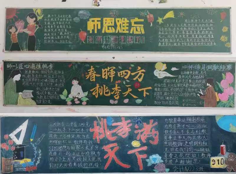 各班级以庆祝教师节为主题,绘制了精美的黑板报,板报内容生动丰富,情感真挚,构思巧妙精致,都表达着同学们对老师深深的感激之情,是公司团员青年送给老师最好的礼物。
