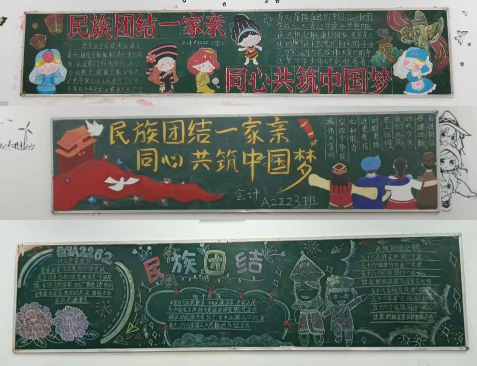 各班级在绘制“民族团结一家亲,同心共筑中国梦”主题黑板报的同时,还组织召开了主题团日活动。同学们围绕“民族团结一家亲,同心共筑中国梦”主题展踊跃发言,大家纷纷表示:作为当代老员工,要进一步提高思想认识,把铸牢中华民族共同体意识贯穿到学习生活全过程,加强政治理论、传统文化和专业知识本领的学习,锻造过硬本领,提升综合能力,踔厉奋发、不负韶华,让青春在为祖国为人民的奉献中绽放出更加绚丽的光彩。