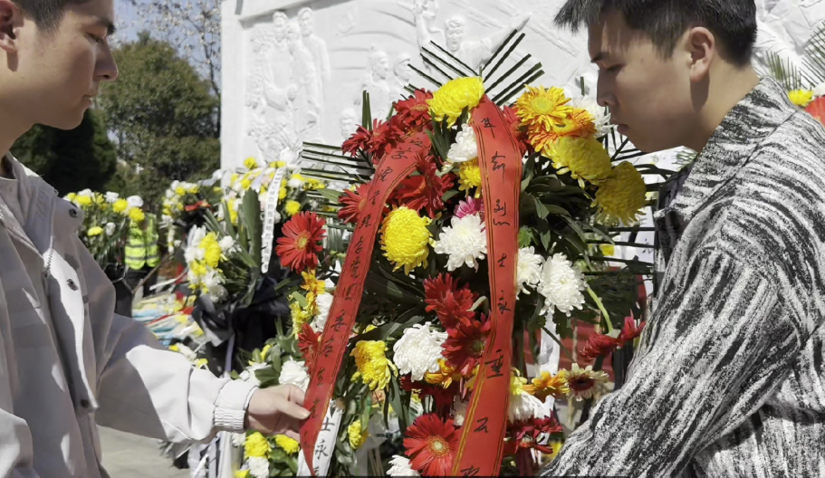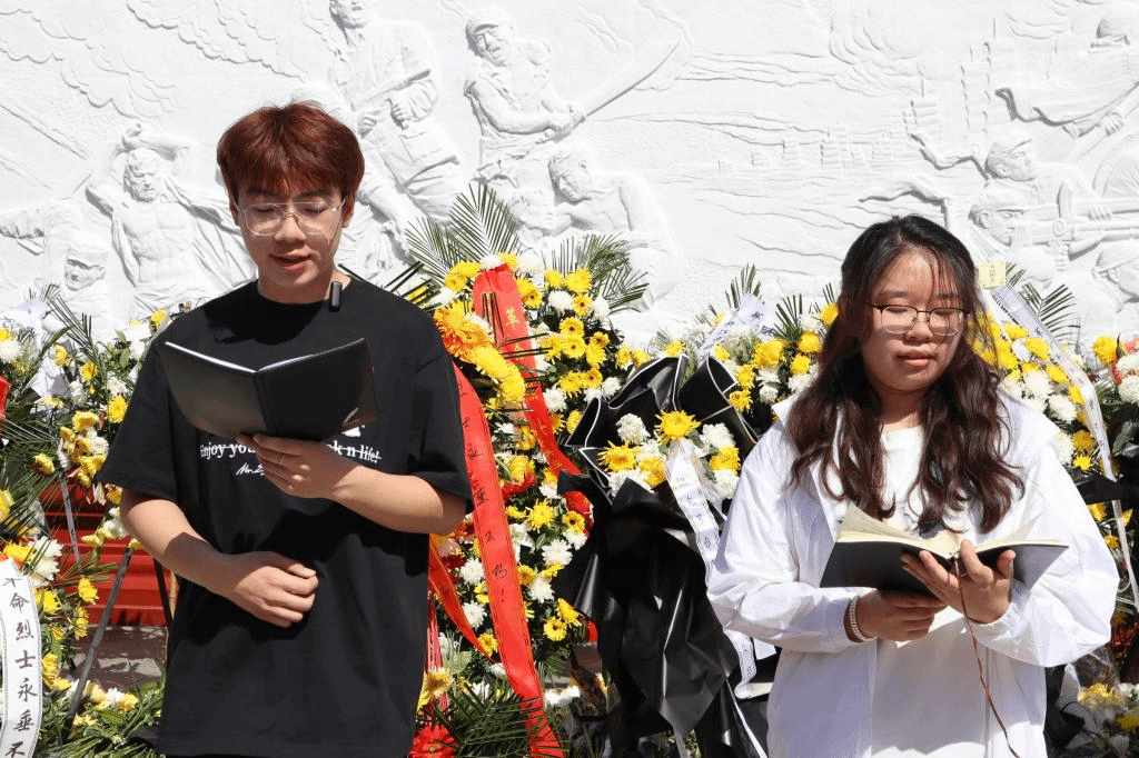 青山埋忠骨,山河念英魂。烈士陵园内,苍松翠柏,庄严肃穆,师生们整齐列队来到革命烈士纪念墙前,整齐肃立,默哀三分钟,员工代表石松、朱文豪向革命烈士敬献花篮,员工代表杜飞、宋婉昕诵读了何敬平烈士所作的《为了免除下一代的苦难》红色家书。