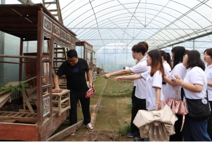 云销雨霁,彩彻区明。雨后夏日的守信农庄重新绽放出属于它的色彩,在企业负责人的带领下,实践队员在守信农庄实地走访,深入了解农庄农文旅融合产业情况,据负责人介绍,守信农庄规划面积为688亩,项目着力打造集生态农业、田园观光、休闲娱乐、农事体验、亲子游乐、研学团建、民宿康养、旅游度假、文化创意和助力乡村振兴为一体的田园综合体,利用“旅游+”、“生态+”、“互联网+”等思维模式,开发农业多功能性,推进农业产业与旅游、教育、文化、康养等产业深度融合。在农具展览馆,负责人向实践队员深入介绍了九江当地农耕文化和传统农业用具,与实践队员探讨如何灵活运用乡村文化,打造有核心竞争力的乡村产业,实践队员结合专业知识,从电商直播、企业管理等角度为当地产业建言献策。