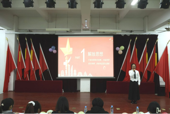 本次大赛共有数十余支队伍参加,经过初赛激烈角逐,6支队伍脱颖而出晋级决赛。决赛现场,选手们激情澎湃,通过PPT演示、案例分析、音频视频等丰富多彩的表现形式进行展示,诉说着新中国75年的光辉历程,让我们深刻领悟时代的变化。其中,来自A2441团支部的林婧怡深刻阐述了习近平总书记在江西考察时提出的“解放思想、开拓进取、扬长避短、固本新兴”目标要求,提出在解放思想中寻求突破,在开拓进取中书写新篇,在扬长避短中不断成长,在固本新兴中迈向更加美好的明天,并表达了对国家、对民族、对集体未来发展的坚定信念与美好愿景。活动期间,XCSport街舞队与声乐队为现场的观众带来了精彩的表演,现场洋溢着自信青春的气息,充斥着青年独有的蓬勃朝气。