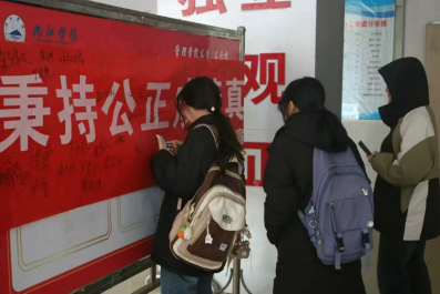 活动中,同学们积极响应,纷纷拿起笔,在横幅签名处,庄严的写上自己的姓名,作出诚信应考的庄严承诺。活动结束时,大家纷纷表示将会制定明确的备考计划,认真复习,严格遵守考试纪律,自觉抵制任何形式的作弊行为,以真实的成绩展示自身的学业能力和道德素养。