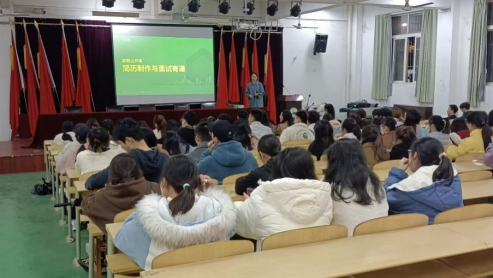 覃思佳女士主要围绕简历制作、面试礼仪和技巧展开:讲座过程中同学们积极的和指导老师互动,气氛融洽。最后在同学们热烈的掌声中讲座圆满结束。