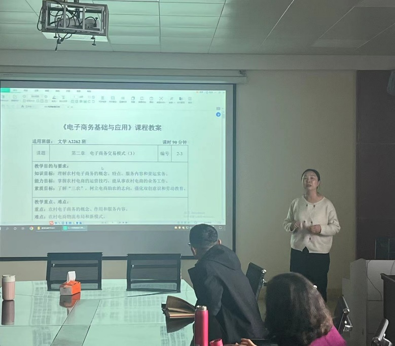王晴博士将《电子商务基础与应用》课程课堂教案以表格的形式展示,结合课程思政知识的融入,重点介绍了课程的主要内容和教学流程,并就实践素质拓展方面进行了更为详细的阐述,强调要培养员工分析问题、理论转化为实践的能力。