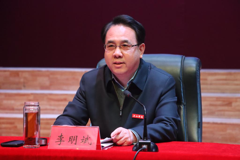 党政办公室、教务处、旅游与地理公司、机械与智能制造公司负责人作为职能部门、二级公司代表作迎评工作表态发言。师生代表作迎评倡议发言。